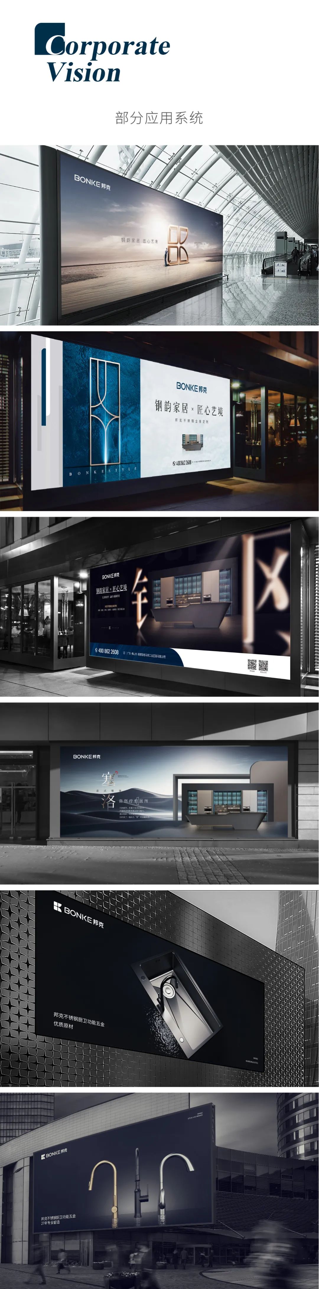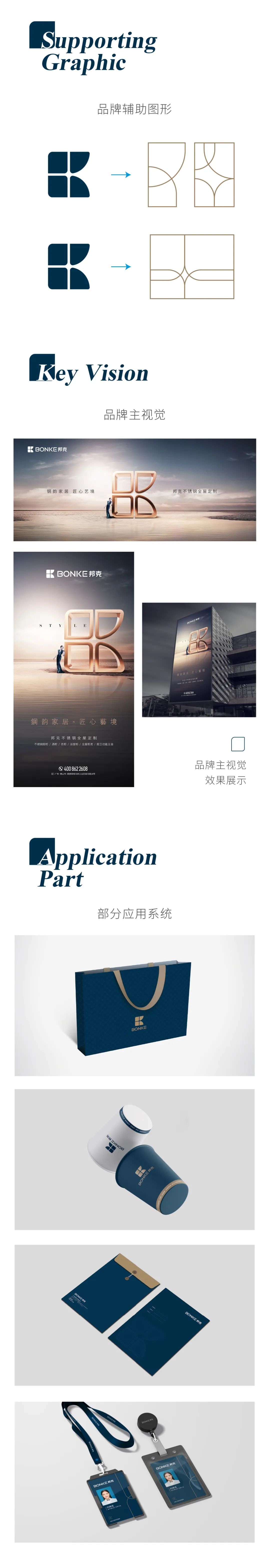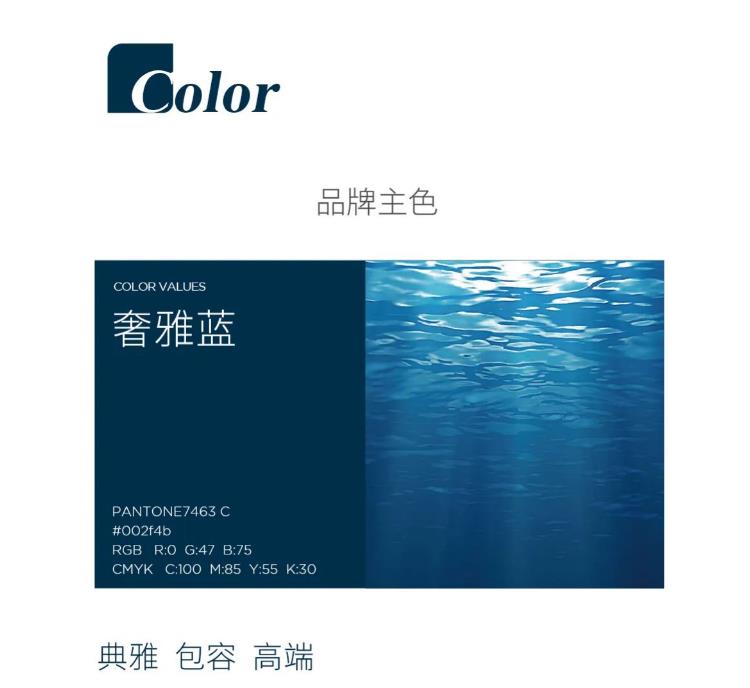 將原深棕色提升為奢雅藍,如大海般包容,如星空般神秘,高貴而沉靜的藍色沉積著歷史的底蘊,匯聚著文化的融合,寓意品牌將往更高端的定制家居行業迭代,企業的使命與愿景通過色彩傳遞給菁英新貴人群。