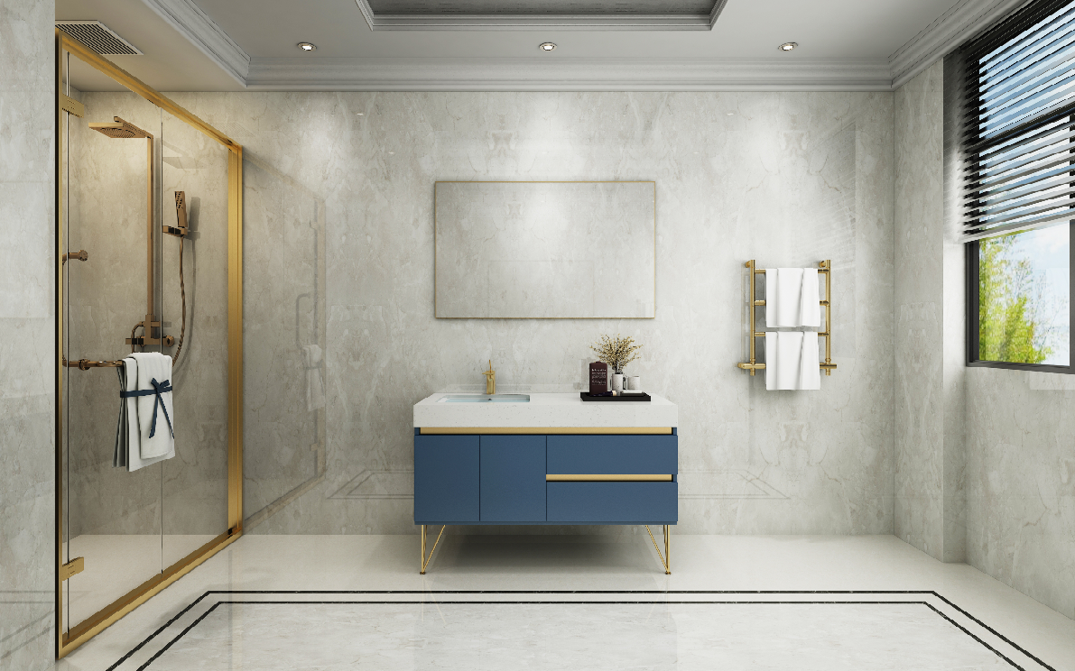 衛生間由于長期處于潮濕的狀態,如果沒有進行干濕分離處理,那么一 定不要選擇實木材質的浴室柜,容易受潮腐爛縮短使用壽命。現在 市面上有 很多鋁制材料的浴室柜,防水防潮不會腐爛。如果地面經常有積水,那么建議 選擇掛墻式安裝,底部留空的設計不會被水浸,關鍵是打掃衛生更徹底,不會 留下衛生死角,避免細菌的滋生。