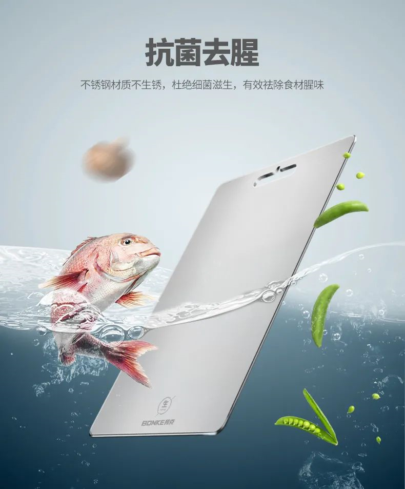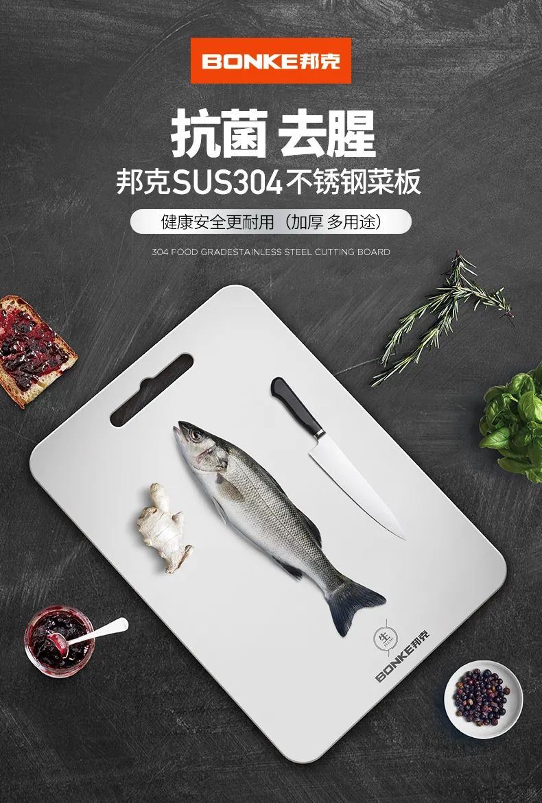 邦克新一代不銹鋼菜板雙面抗菌,完美生熟分離,有了它,不僅僅只是加工食材更是對生活一種獨到見解和熱愛經過拉絲拋光等40多道工藝,表面更有質感不起沫,不掉屑,不隱藏食物殘渣一沖即凈,省時省力,持久耐用。