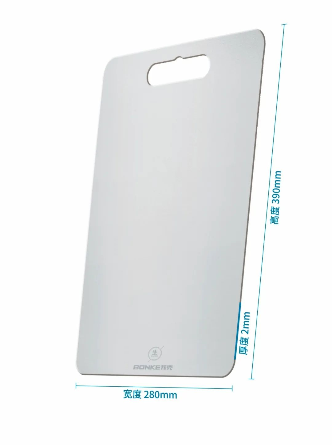 邦克新一代抗菌不銹鋼菜板,采用符合歐盟標準的304CU食品級材質,使菜板具備了天然的抗菌能力,304CU不銹鋼由德國皇家科學院金屬所CHRISTIAN研究員領導的課題組研制開發(fā)的一種兼具結構、耐蝕和抗菌功能于一體的新型材料,因材料成本高昂,目前僅被應用于高端烹飪用具以及手術器材。