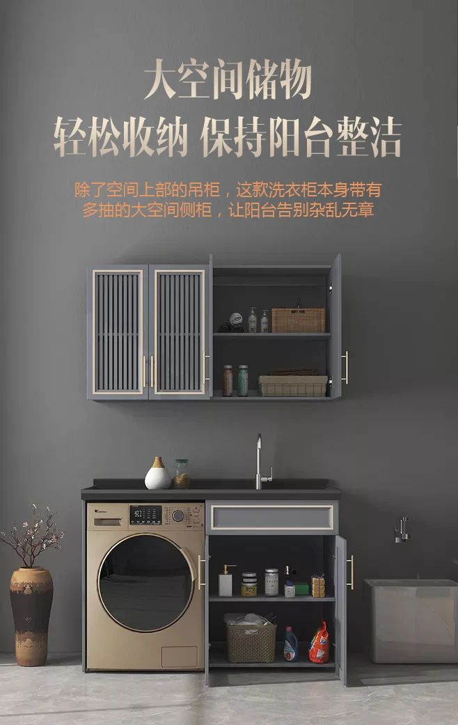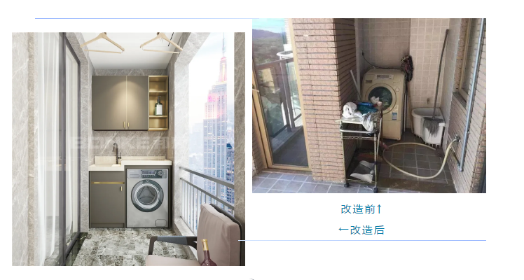 陽臺雜物堆放總是亂糟糟,放上陽臺柜把雜物歸類收納,洗衣機也可以嵌入其中,讓陽臺更顯整齊美觀。