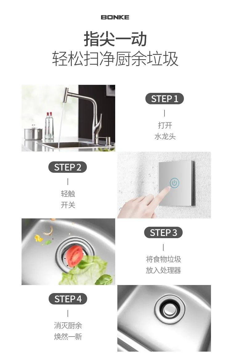 廚房垃圾,一掃而空。2020疫情催生人們對于健康綠色生活和品質(zhì)居住的關(guān)注以及90后消費群體崛起帶來的“懶人經(jīng)濟”生活。2021,邦克廚余垃圾處理器,為美好而來,用極致生活與家人一起創(chuàng)造家居潔凈生活。