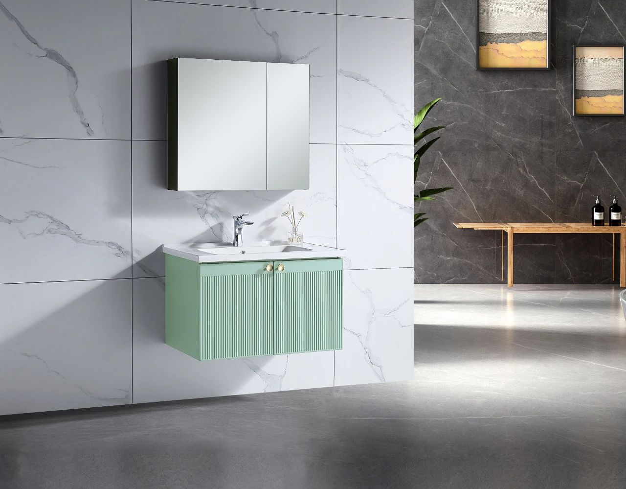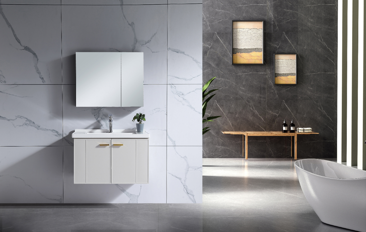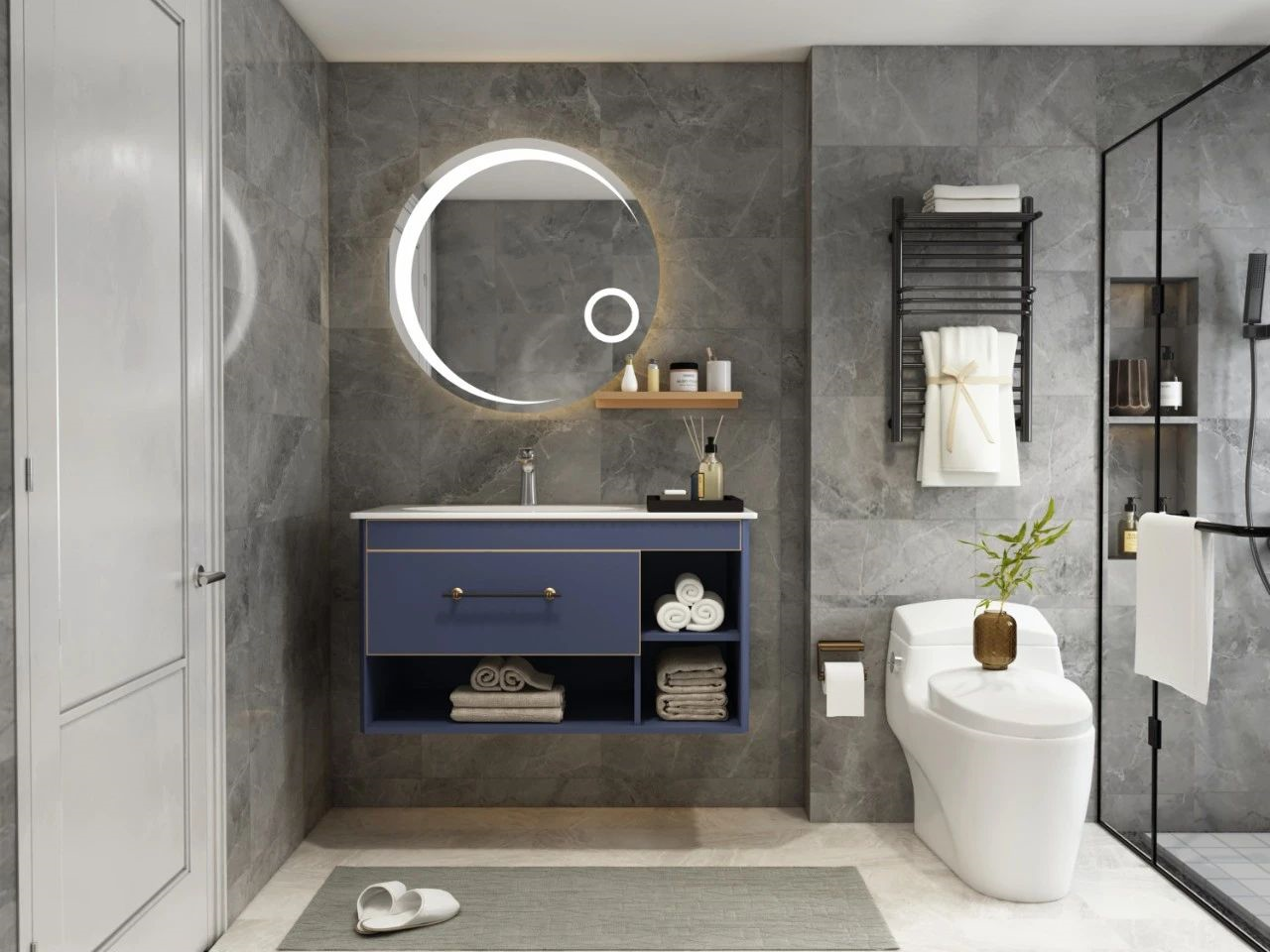 用曼妙的墨蘭色浴室柜承載幻想