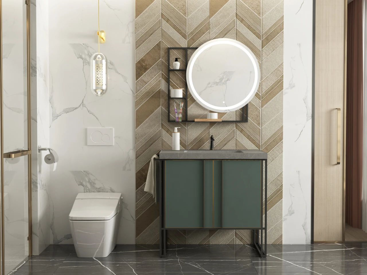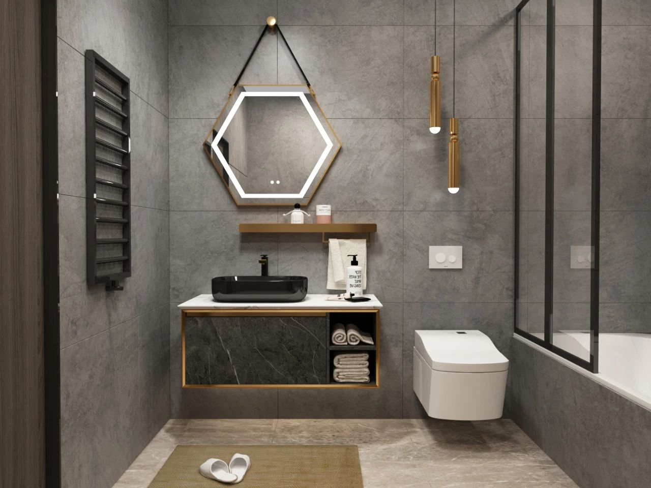 為浴室帶來黑金交錯的美麗瞬間