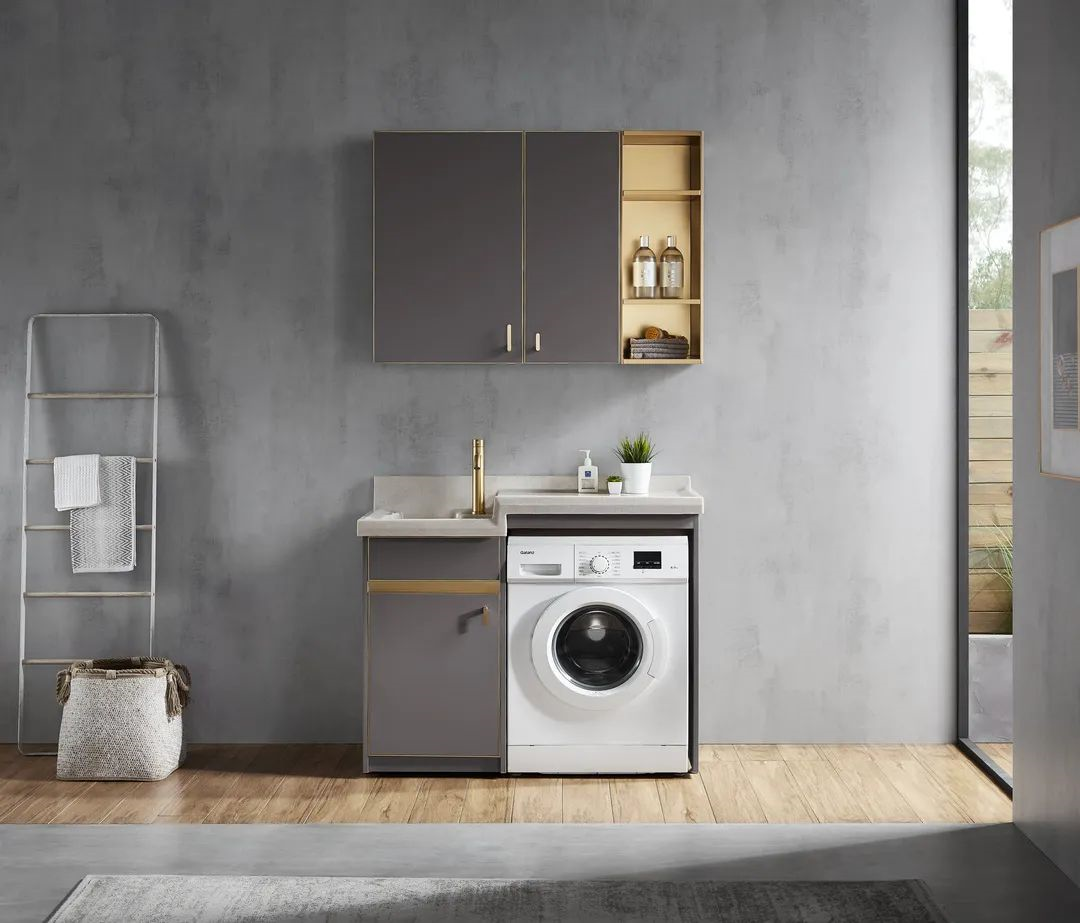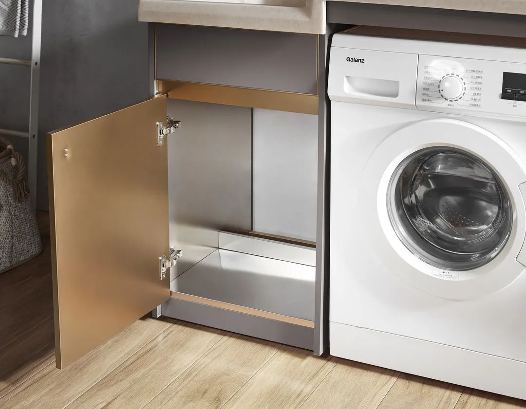 機(jī)身入柜,不多占空間。不少陽臺柜會與洗衣機(jī)或烘干機(jī)搭配使用,因此需要在柜子安裝前期量好洗衣機(jī)與烘干機(jī)的尺寸及擺放位置,做好電路設(shè)計,包括插座的位置分布。