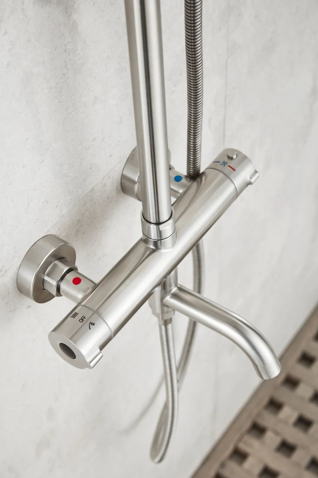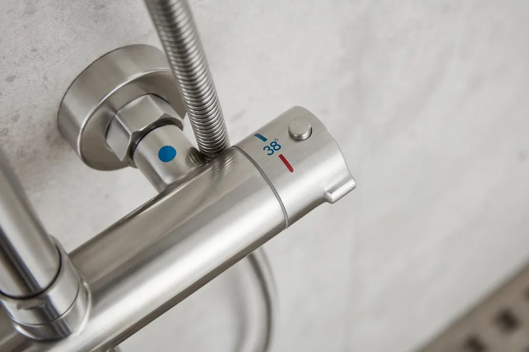 高端陶瓷恒溫閥芯,50萬次質保承諾;38°C貼心恒溫定位,無懼水壓波動;4-55°C區間精準微調,滿足不同需求;中置調溫安全鎖鍵,避免兒童嬉鬧或意外觸碰造成高溫燙傷。