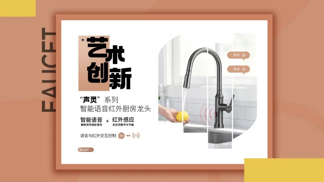 除此之外,廚房龍頭還配備了語音控制功能,可識別中英文語音控制詞匯,實現智能開關水;在智能感應的加持下,可以有效減少龍頭把手上的油污和細菌的蔓延散布,避免用戶手部因開關龍頭而產生二次污染,開啟廚房免觸操作時代。