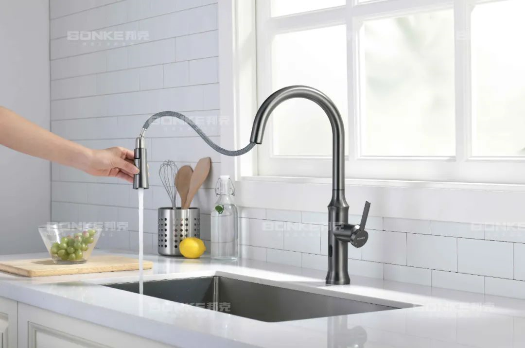 此外,邦克智能語音紅外廚房龍頭還配備了紅外傳感器,能夠直觀理解用戶當前想要的操作,恰到好處地為用戶開關龍頭。只要在龍頭的傳感器前輕輕揮手,水流自來,再次揮手就能輕松關掉水流。
