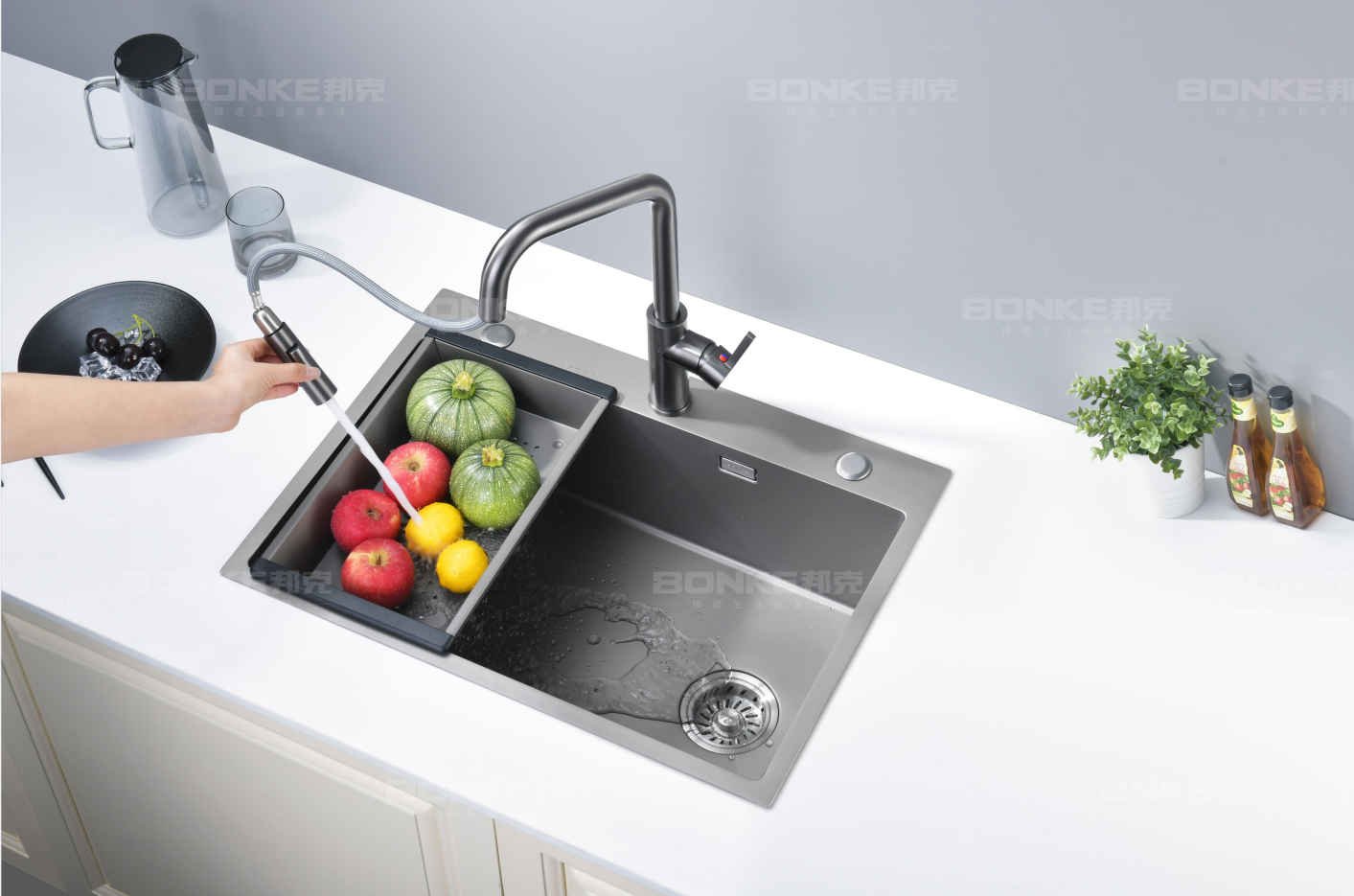 作為不銹鋼廚衛五金十大品牌之一,邦克“荷凈”納米系列水槽是當下熱門產品,對于緊湊的廚房空間來說可以起到化腐朽為神奇的效果,因此備受消費者的歡迎。