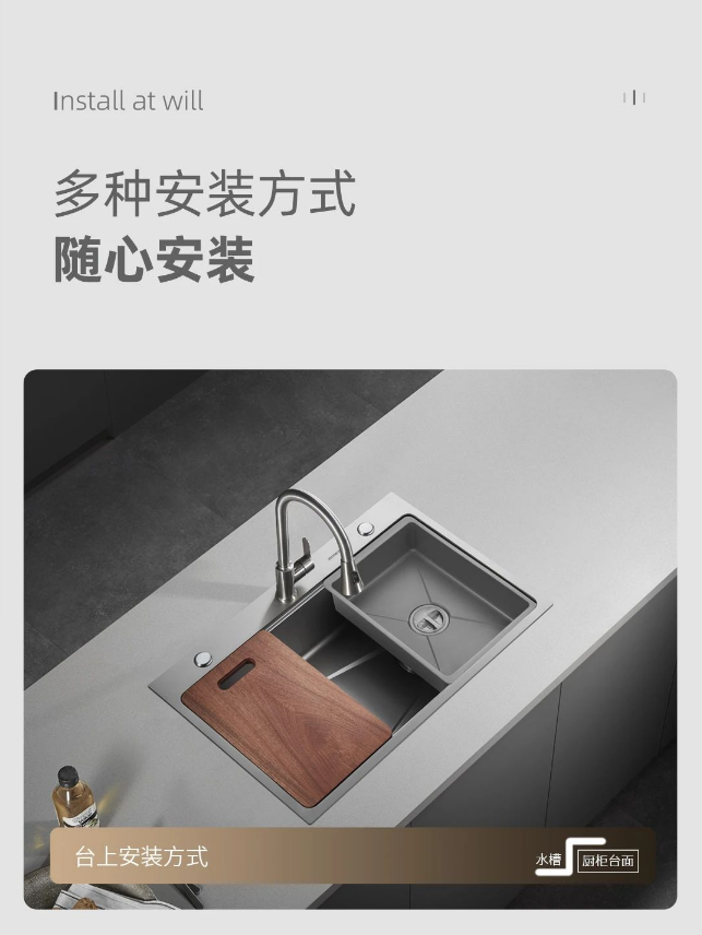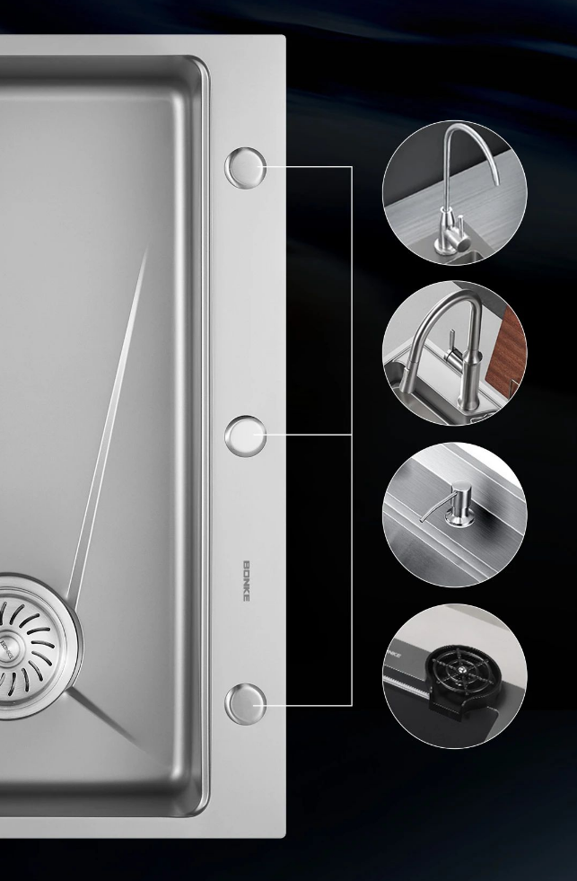 龍頭、皂液器、凈水龍頭、洗杯器等配件隨需安裝