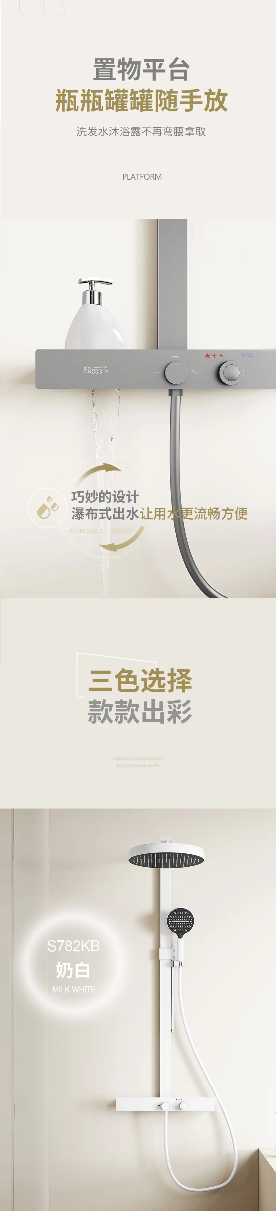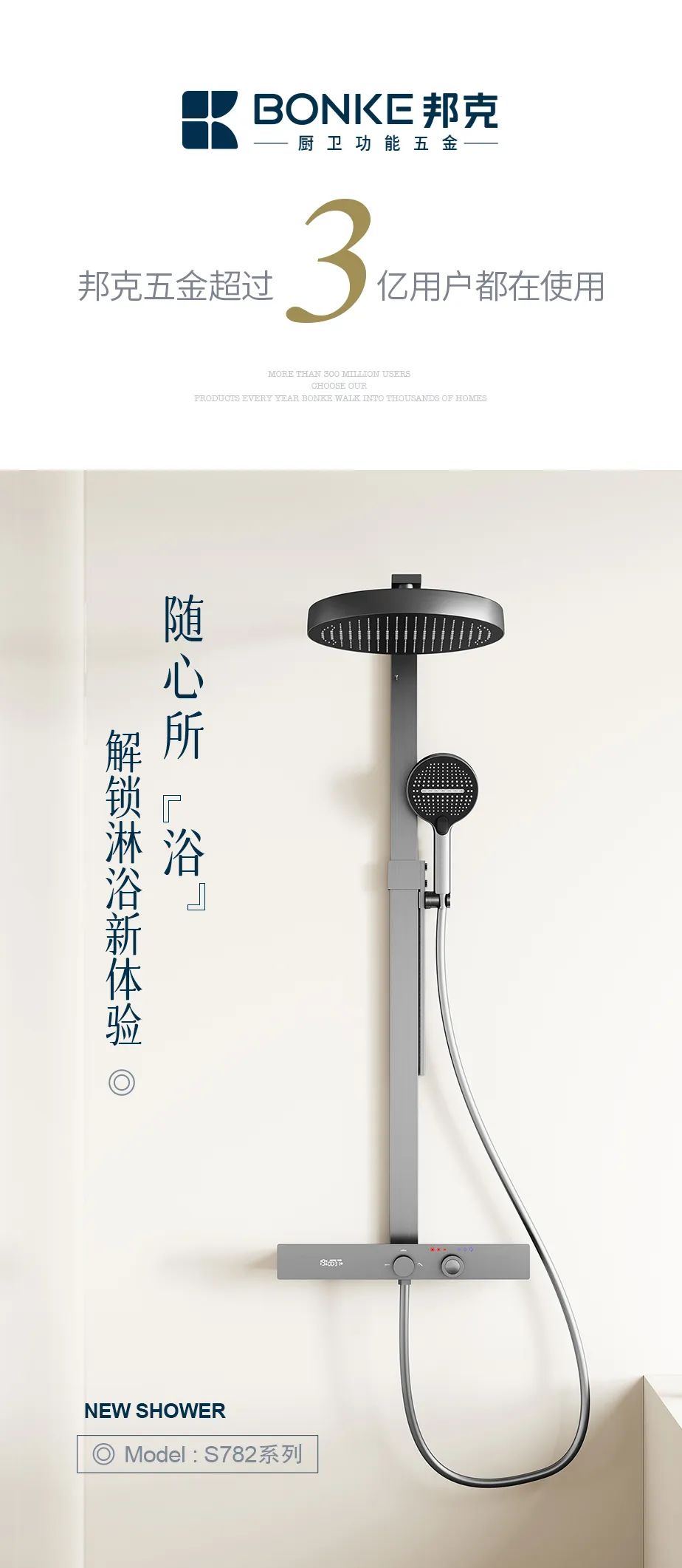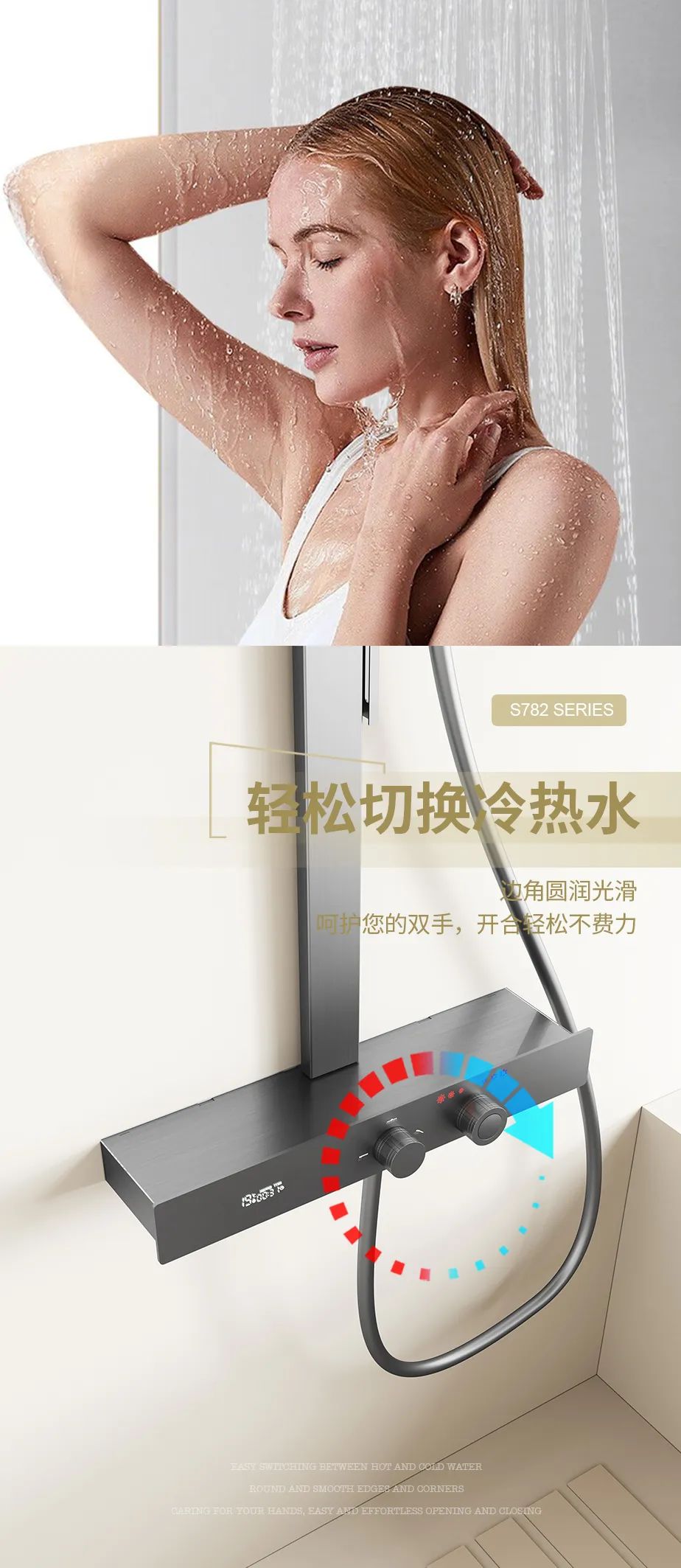 其他標準: 304不銹鋼殼、一體鑄造銅閥體、13寸花灑頂嘖、采用液態硅膠出水咀、三功能花灑加噴槍功能、瀑布下出水、全銅雙手輪、帶數顯LED燈水力發電